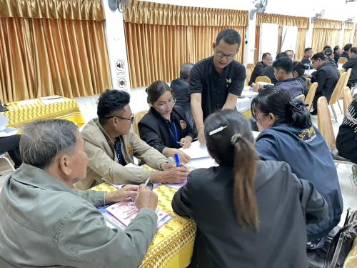 - แบ่งกลุ่มรายตำบลวิเคราะห์และการวางแผนชุมชน พร้อมฝึกปฏิบัติการจัดทำและการบริหารงานโครงการพัฒนาชุมชน โดย นายสุริยา สุคนธชาติ นักทรัพยากรบุคคลปฏิบัติการ เป็นวิทยากรให้ความรู้