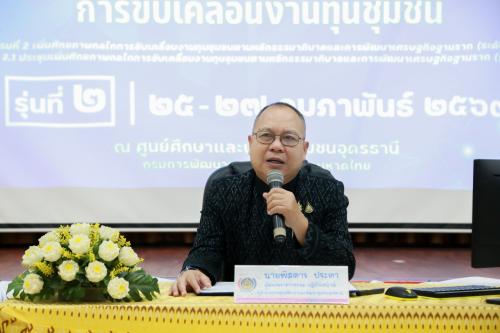 กรมการพัฒนาชุมชน โดยสำนักพัฒนาทุนและองค์กรการเงินชุมชน มีภารกิจเกี่ยวกับการส่งเสริมกระบวนการเรียนรู้และการมีส่วนร่วมของประชาชน ส่งเสริมและพัฒนาเศรษฐกิจชุมชนฐานรากให้มีความมั่นคงและมีเสถียรภาพ สร้างความเข้มแข็งของเศรษฐกิจชุมชน ส่งเสริมและพัฒนาการบริหารจัดการกองทุนชุมชนให้มีประสิทธิภาพตามหลักธรรมาภิบาล เพื่อพัฒนาหมู่บ้าน/ชุมชน ให้สามารถจัดการทุนชุมชน เพื่อเป็นฐานในการพัฒนาเศรษฐกิจและสังคม ด้วยการส่งเสริมและสนับสนุนการดำเนินงานกองทุนชุมชน และเพื่อเพิ่มศักยภาพเจ้าหน้าที่พัฒนาชุมชน คณะกรรมการกองทุนชุมชน ให้มีความรู้ความเข้าใจ ในการขับเคลื่อนงานทุนชุมชนขับเคลื่อนเศรษฐกิจฐานราก รวมถึงการส่งเสริมประชาชนเข้าถึงแหล่งทุนที่มีในชุมชน เพื่อนำเงินทุนไปประกอบอาชีพ ให้เกิดรายได้ และเพื่อให้เจ้าหน้าที่พัฒนาชุมชนระดับจังหวัด/อำเภอ และคณะกรรมการกองทุนชุมชนสามารถขับเคลื่อนงานไปสู่การปฏิบัติในระดับพื้นที่ให้บรรลุเป้าหมายและเกิดผลสัมฤทธิ์ตามวัตถุประสงค์โครงการฯ ซึ่งศูนย์ศึกษาและพัฒนาชุมชนอุดรธานี เป็นหน่วยให้บริการการฝึกอบรม ในรุ่นที่ 2 ดำเนินการระหว่างวันที่ 25 - 27 กุมภาพันธ์ 2569