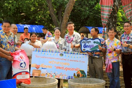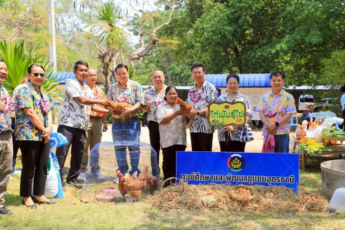 - มอบไก่พันธุ์ไข่ และมอบลูกพันธุ์ปลาดุกและอุปกรณ์เลี้ยงปลาดุก แก่ ลูกจ้าง ศพช.อุดรธานี เพื่อเป็นต้นแบบการสร้างความมั่นคงทางอาหาร