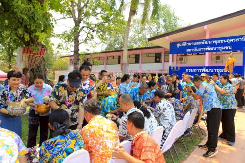 ทั้งนี้ นายพิสดาร ประดา ผู้ตรวจราชการกรม ปฏิบัติหน้าที่ผู้อำนวยการศูนย์ศึกษาและพัฒนาชุมชนอุดรธานี พร้อมด้วยผู้อำนวยการกลุ่มงานฯ และเจ้าหน้าที่ศูนย์ฯ ได้รับเกียรติจากอดีตผู้บริหารของกรมการพัฒนาชุมชน นายจิรศักดิ์ สีหามาตย์ อดีตรองผู้ว่าราชการจังหวัดขอนแก่น นายกัมปนาท จักราล วิเวศ ศรีพุทธา อดีตรองผู้ว่าราชการจังหวัดนครพนม นายทรงศักดิ์ คำมูล ข้าราชการบำนาญ เข้าร่วมกิจกรรมเพื่อให้พรแก่บุคลากรของกรมการพัฒนาชุมชน และแขกจากภาคส่วนประชาชน เครือข่ายโอทอป เครือข่ายโคกหนองนา