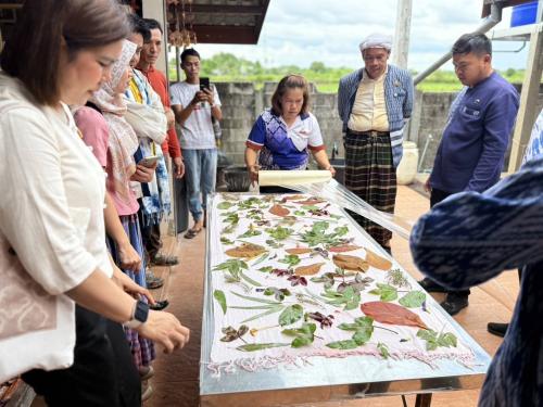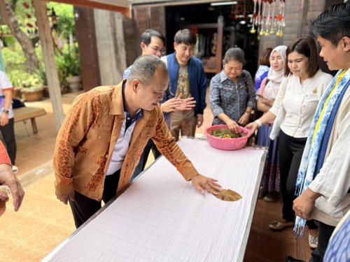 กิจกรรมการเรียนรู้ในวันนี้เป็นการศึกษาดูงานการสาธิตการย้อมสีธรรมชาติ (ดอกบัวแดง) การย้อมผ้า Eco-Print และการทำอาหาร- ขนมพื้นถิ่น เช่น ขนมดอกบัว ข้าวเหนียวปิ้ง ข้าวต้มกลีบบัวแดง ขนมจีน ส้มตำ และฟังบรรยายสรุป เทคนิคการบริหารจัดการกลุ่ม การสร้างเครือข่าย การตลาดและช่องทางตลาด